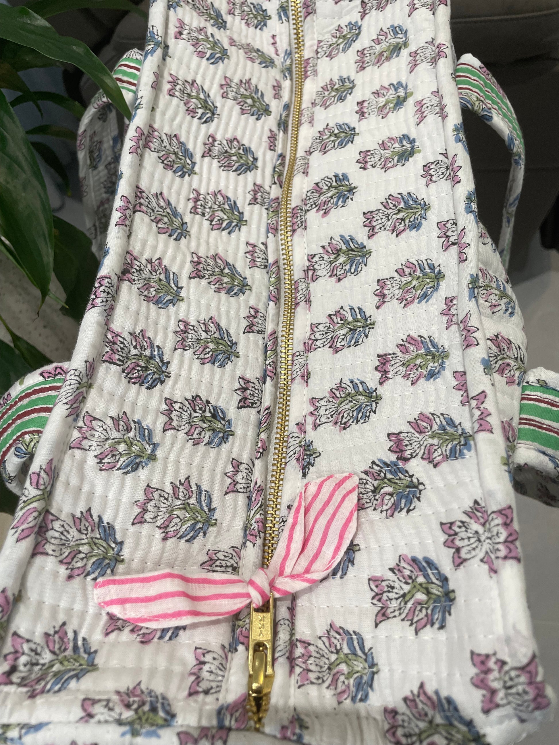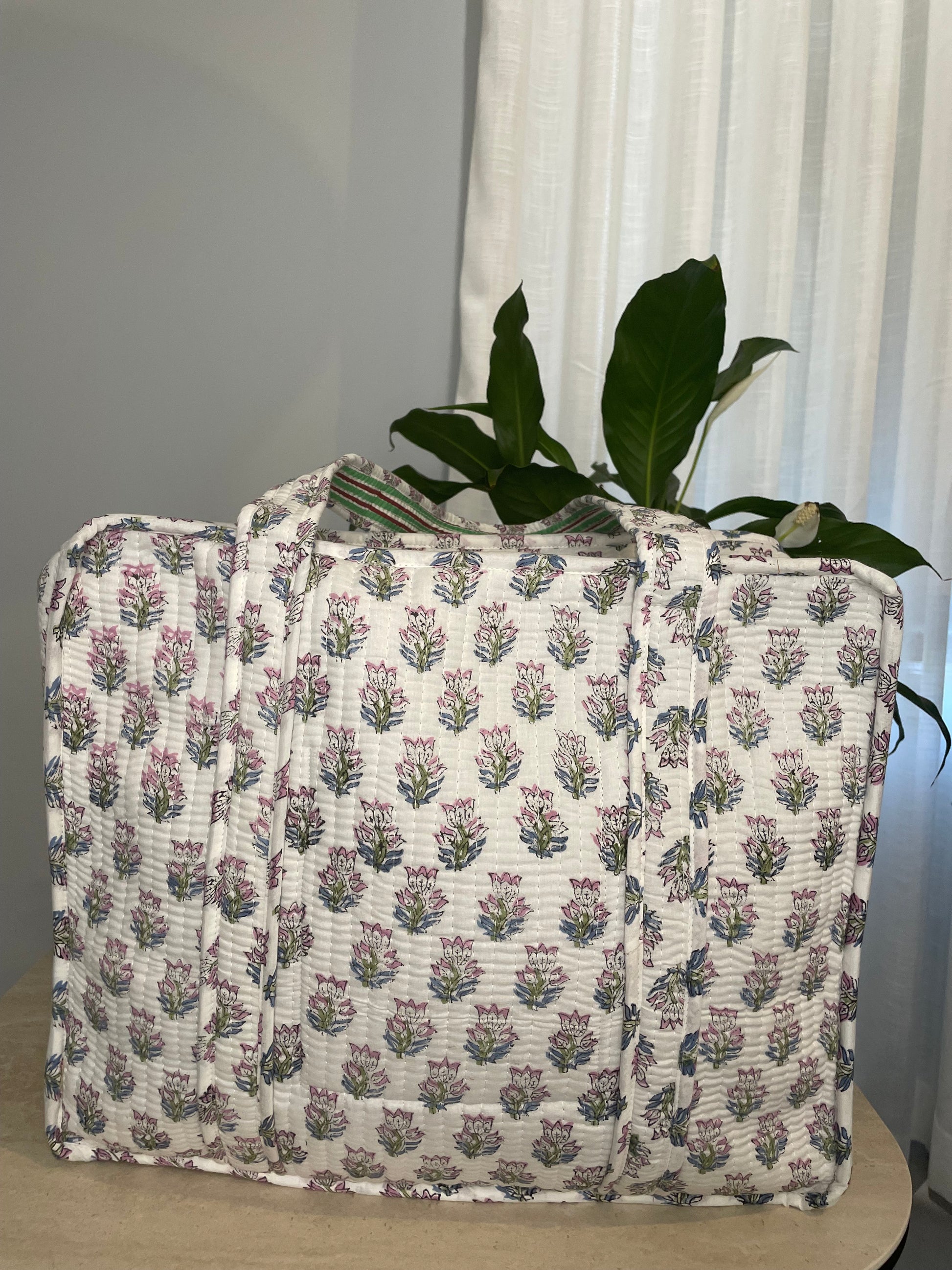 Our hand–block-printed Tote Bags are thoughtfully crafted to be the ideal companion for every adventure. Our Tote Bags combine beauty and practicality. Each bag is double lined, quilted with soft padding, and finished with two interior pocket perfect for your phone, wallet etc. This three-layer tote bag combines two shades of 100% cotton fabric, with a padded middle layer for added comfort and protection.